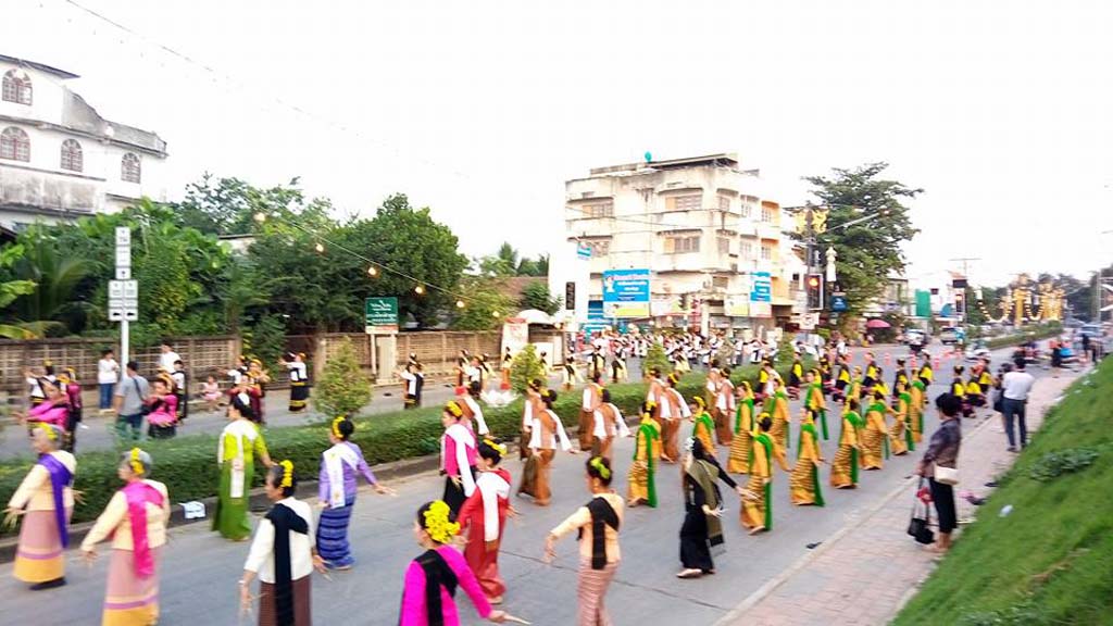 จากนั้น ช่างฟ้อน ชาวจังหวัดลำพูน ทุกเพศ ทุกวัย ฟ้อนถวายแด่พระนางจามเทวี แบ่งเป็น ช่างฟ้อนเชิง จำนวน 419 คน และ ช่างฟ้อนเล็บ 2,376 คน รวมจำนวน 2,795 คน ถวายสักการะพระนางจามเทวี และ ตลอดเส้นทางตั้งแต่ถนนด้านหน้าลานอนุสาวรีย์เจ้าแม่จามเทวี ไปจนถึงถนนอินทยงยศ ด้านหน้าศาลากลางจังหวัดลำพูน ( รวมระยะทาง 3 กิโลเมตร )